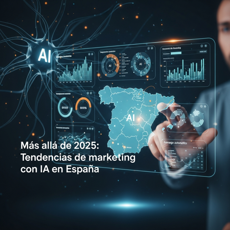 Las tareas operativas de marketing continuarán automatizándose hasta lograr un marketing prácticamente en piloto automático. Ya vemos atisbos de esta tendencia: plataformas como Google Ads Performance Max o Meta Advantage+ usan IA para asignar presupuestos y definir audiencias de forma autónoma. La IA moderna puede monitorizar campañas en tiempo real e identificar qué anuncios o creatividades funcionan mejor, redistribuyendo automáticamente el presupuesto hacia ellos y maximizando el ROI sin intervención manual. En el futuro será suficiente definir un objetivo (por ejemplo, “aumentar un 15% las ventas este trimestre”) y la IA diseñará y ejecutará la campaña óptima en su totalidad, ajustando todos los parámetros sobre la marcha.